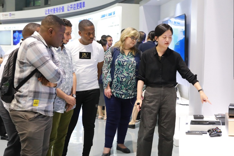 9月4日下午,非洲數智賦能高質量發展研修班一行走進新大陸科技集團參觀和交流。來自非洲多國的約15名官員、專家,對新大陸通信公司的AI智慧云盒、AI攝像頭+報警器、邊緣盒子等產品表現出濃厚興趣。公司海外銷售部陳婷與研修班成員深入交流,交換聯系方式,為后續拓展非洲市場創造了有利條件。