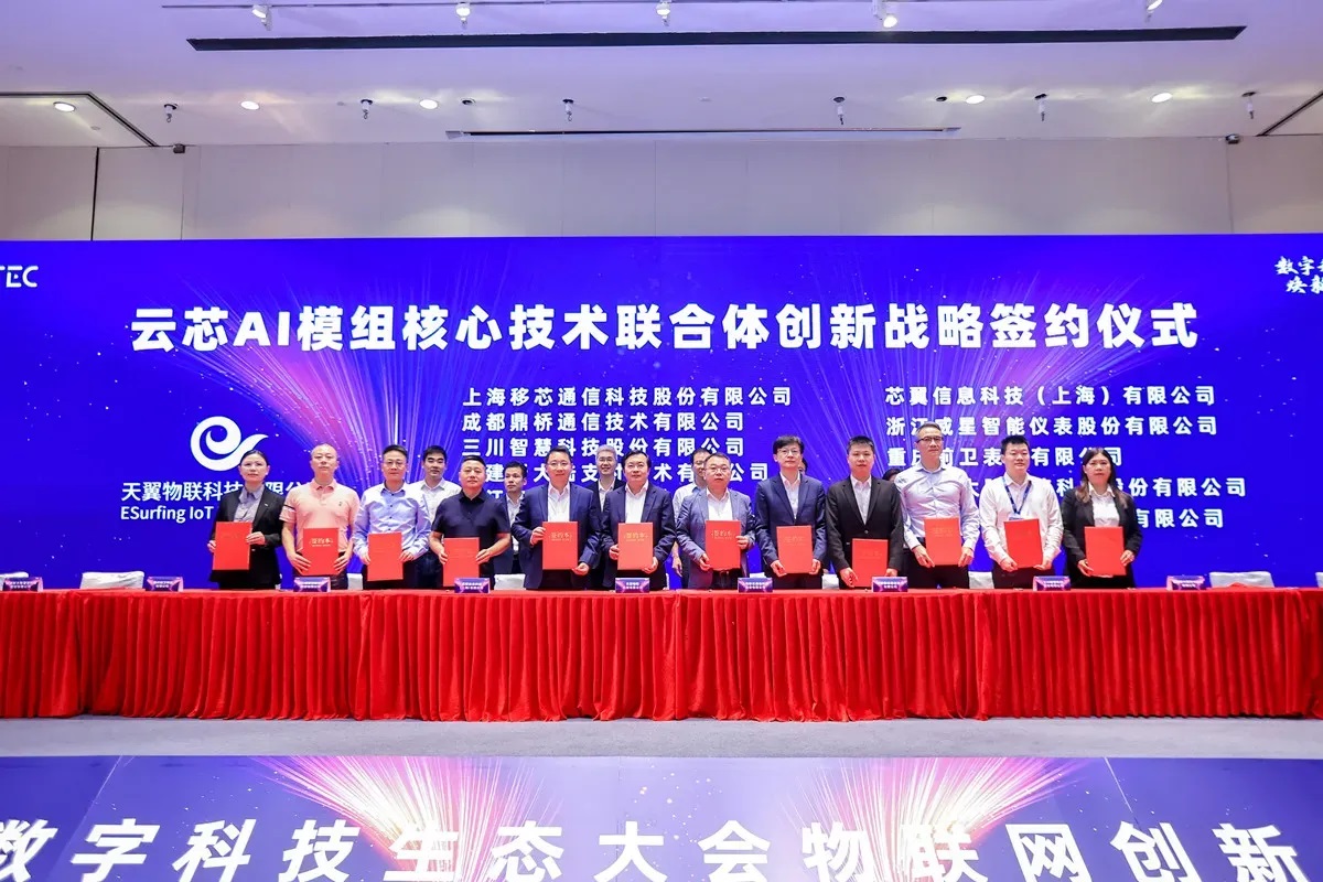 在大會物聯網創新合作論壇上,新大陸通信公司受邀參加云芯AI模組核心技術聯合體創新戰略簽約儀式,公司副總經理張磊作為代表完成簽約。后續,新大陸通信公司將與中國電信協同開展云芯AI模組聯合創新和應用落地,推進模組行業定制,加強通信基礎功能與行業特性融合創新,賦能行業數字化轉型,助力企業降本增效。